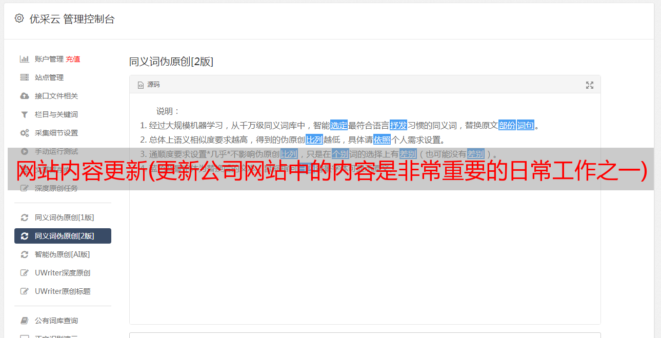 优采云 发布时间: 2021-08-29 10:01网站内容更新(更新公司网站中的内容是非常重要的日常工作之一)