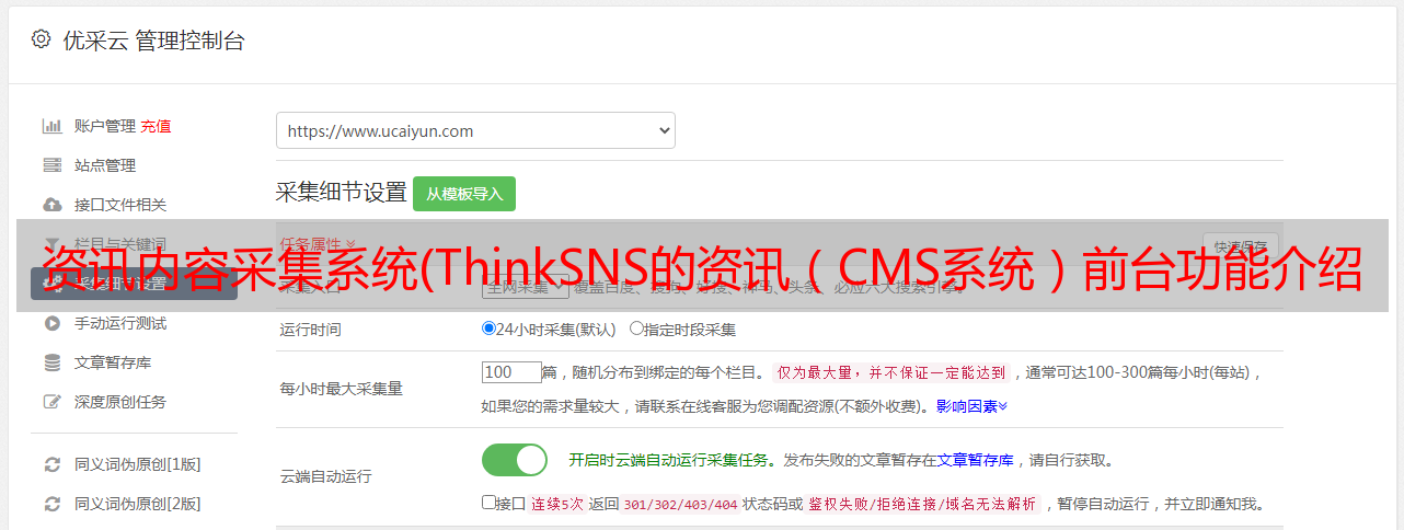 优采云 发布时间: 2021-08-29 14:03资讯内容采集系统(ThinkSNS的资讯(CMS系统)前台功能介绍及应用流程)