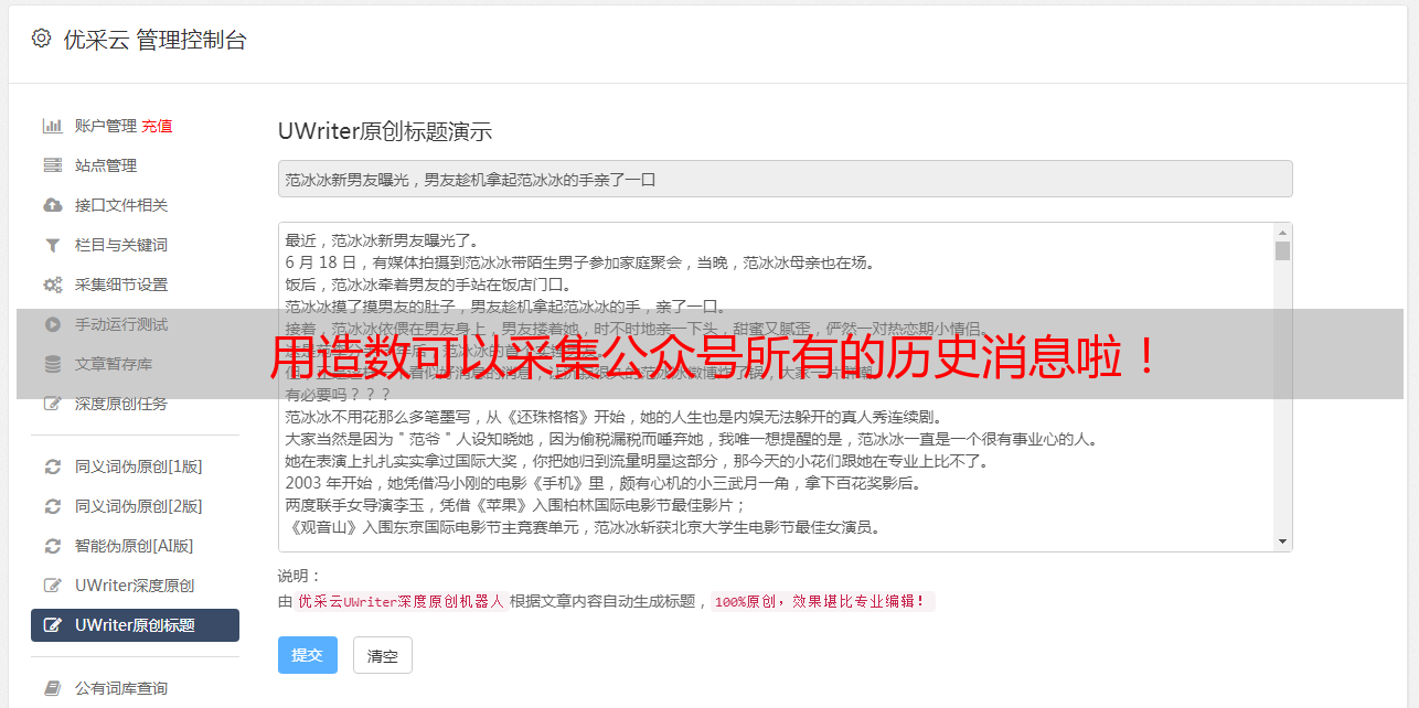 深度爬取就是拿来采集公众号文章的具体内容。