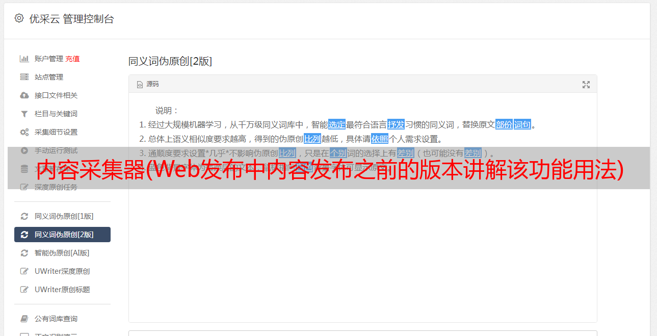 优采云 发布时间: 2021-08-30 02:05内容采集器(Web发布中内容发布之前的版本讲解该功能用法)