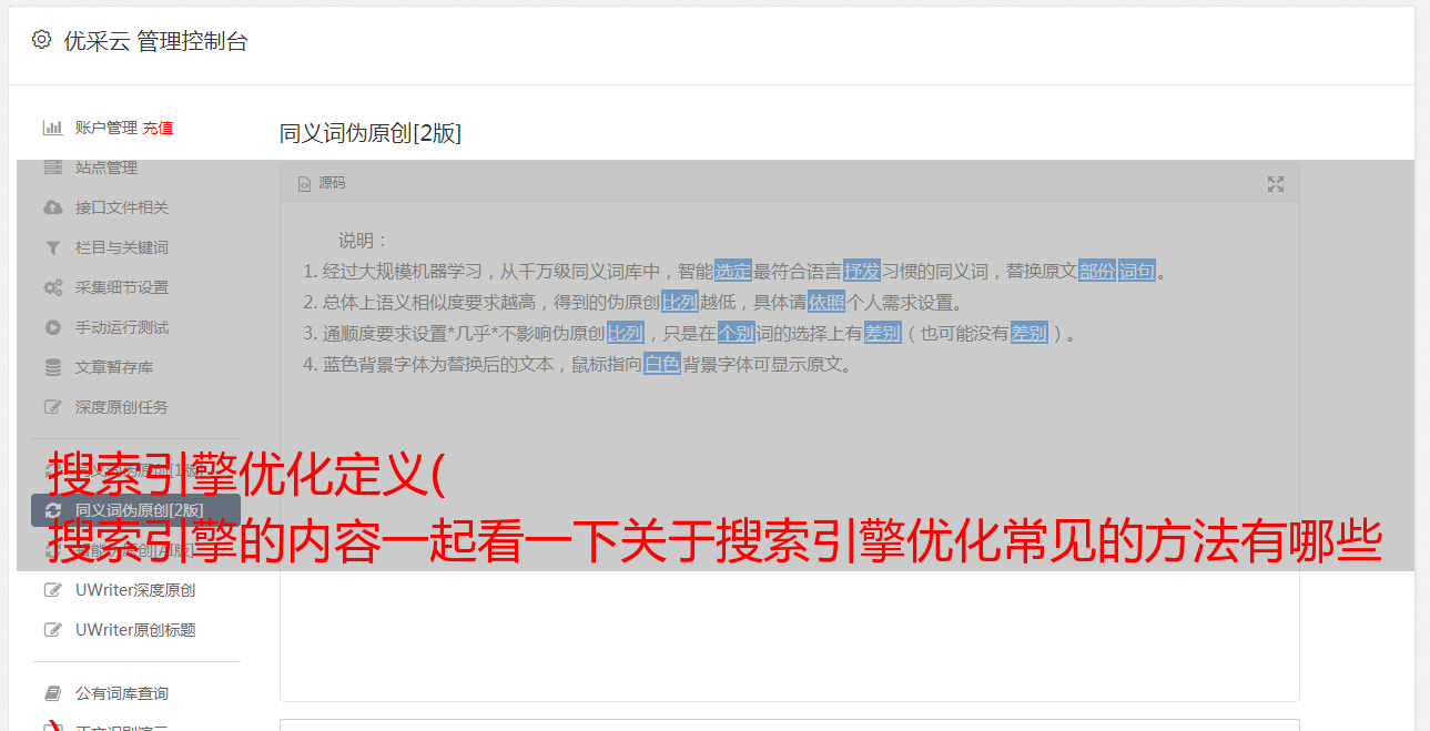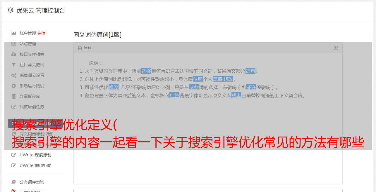 优采云 发布时间: 2021-08-30 02:09搜索引擎优化定义(