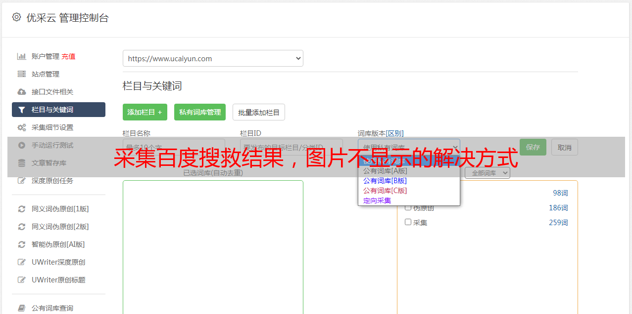 优采云 发布时间: 2020-08-15 04:561.根据关键字采集百度搜救结果
