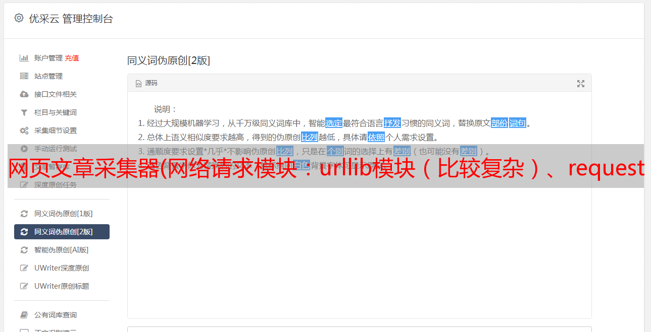 优采云 发布时间: 2021-08-30 10:01网页文章采集器(网络请求模块:urllib模块(比较复杂)、requests模块(图))