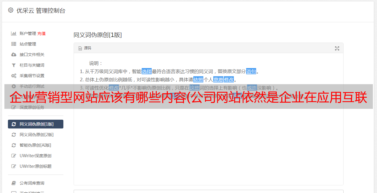 优采云 发布时间: 2021-08-30 11:08企业营销型网站应该有哪些内容(公司网站依然是企业在应用互联网中比少的官方窗口)