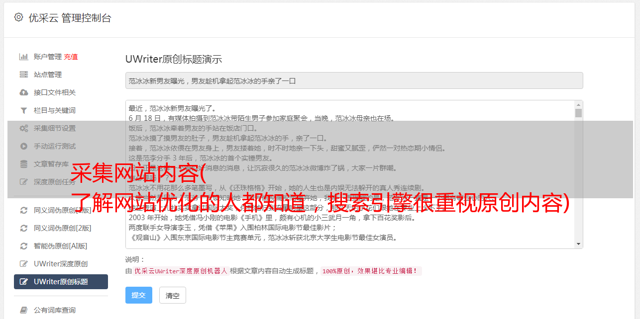 采集网站内容( 了解网站优化的人都知道,搜索引擎很重视原创内容)