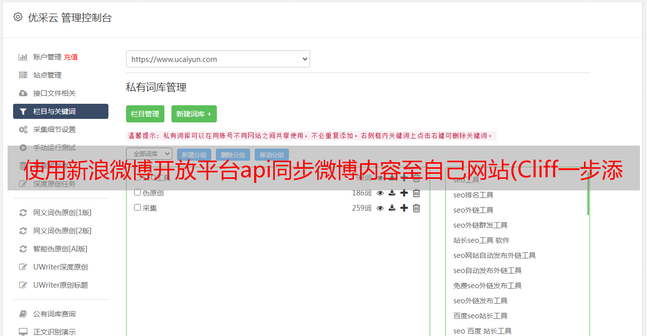 优采云 发布时间: 2021-08-31 01:01使用新浪微博开放平台api同步微博内容至自己网站(Cliff一步添加微博第三方登录的功能有哪些?(图)