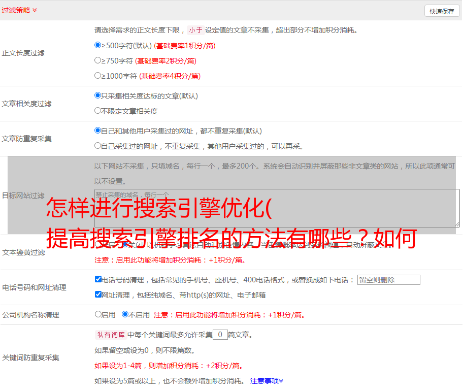由于字数统计是一种传统的索引算法,网站站长往往会通过在页面上添加额外的词来吸引蜘蛛,从而人为地提高页面排名的计算。一些网主已经知道在页面底部添加几十个或几百个关键词,白底白字是作弊,但他们仍然做的很清楚。被搜索引擎发现后,会受到非常严厉的惩罚。
