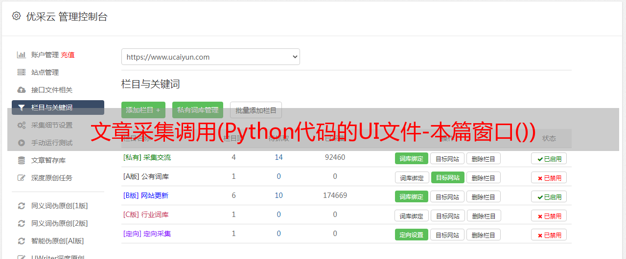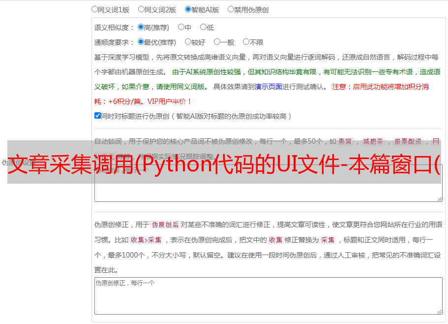 文章采集调用(Python代码的UI文件-本篇窗口())