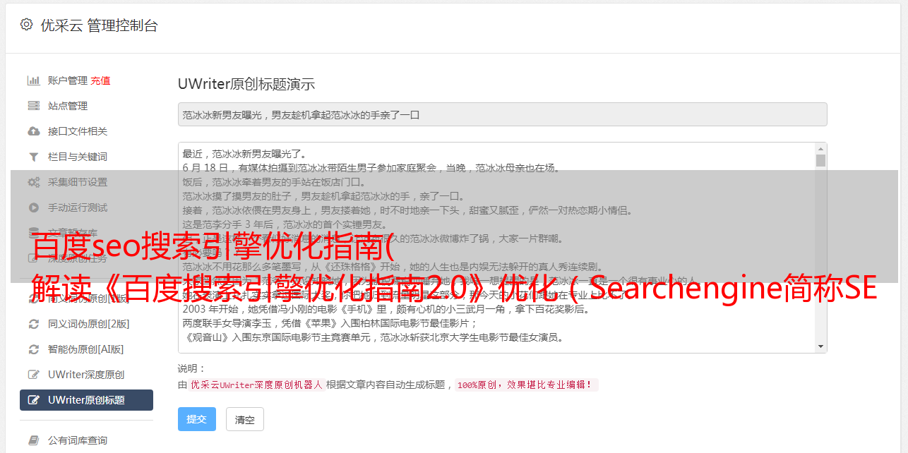 优采云 发布时间: 2021-08-31 09:07百度seo搜索引擎优化指南(