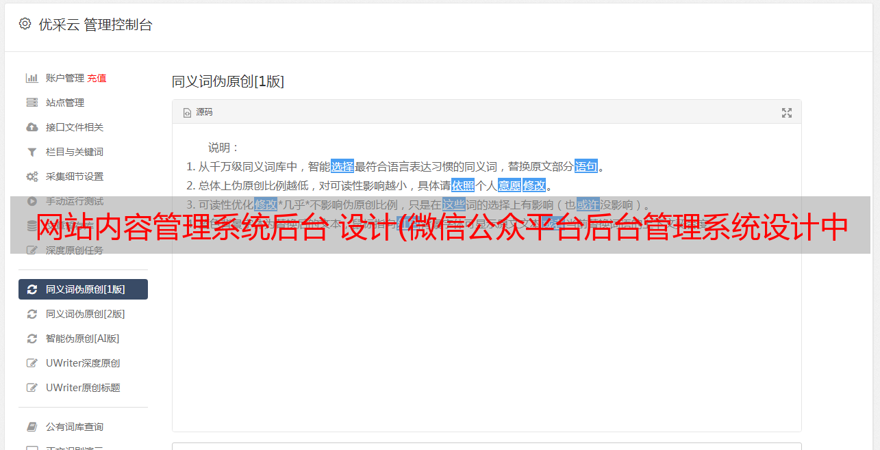优采云 发布时间: 2021-08-31 14:06网站内容管理系统后台 设计(微信公众平台后台管理系统设计中可以借鉴的一个地方!)