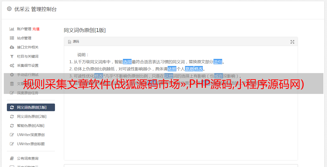 规则采集文章软件(战狐源码市场»,PHP源码,小程序源码网)