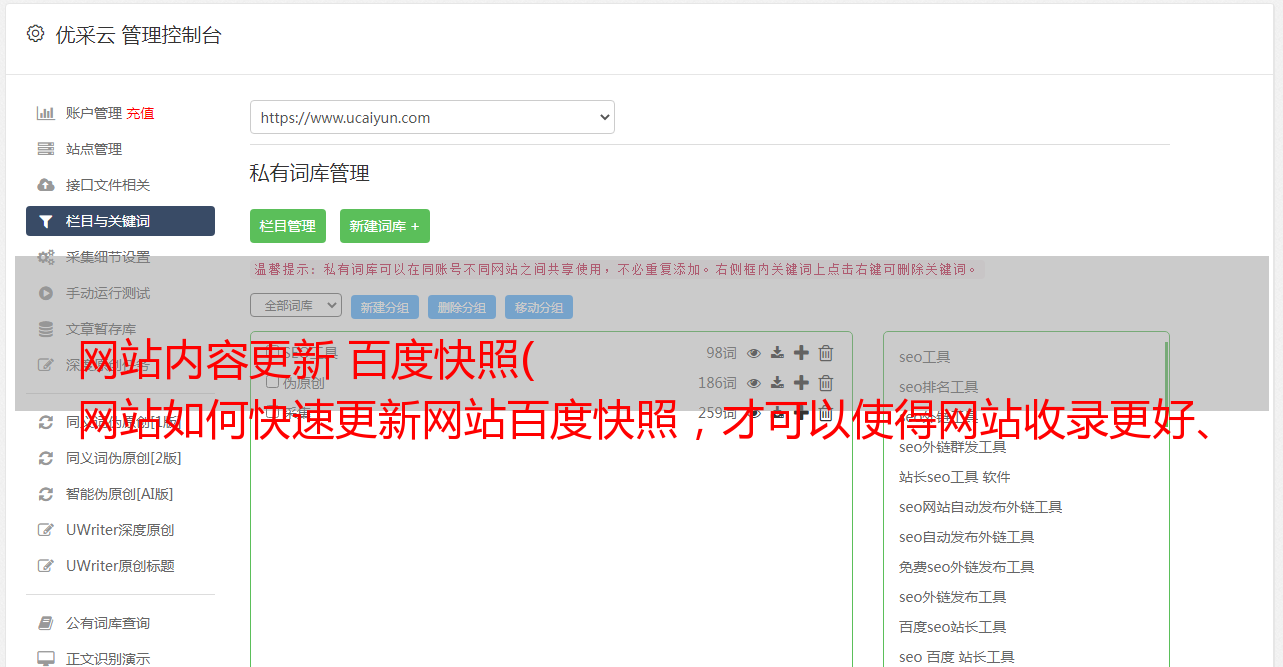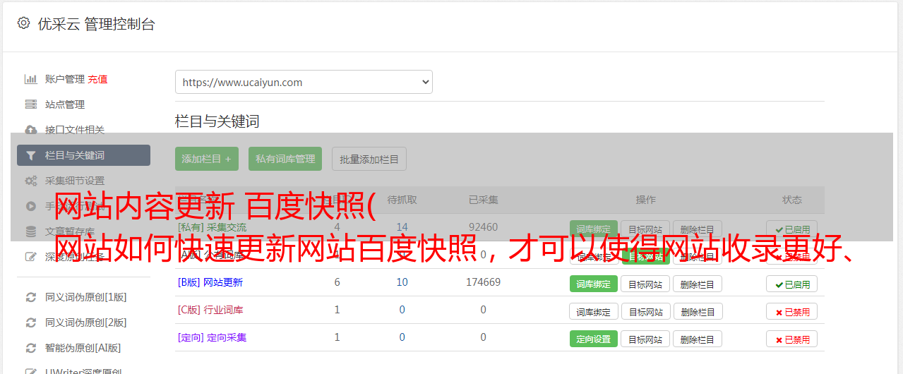 二、Baidu 有哪些快照更新工具? 1、百度后台数据