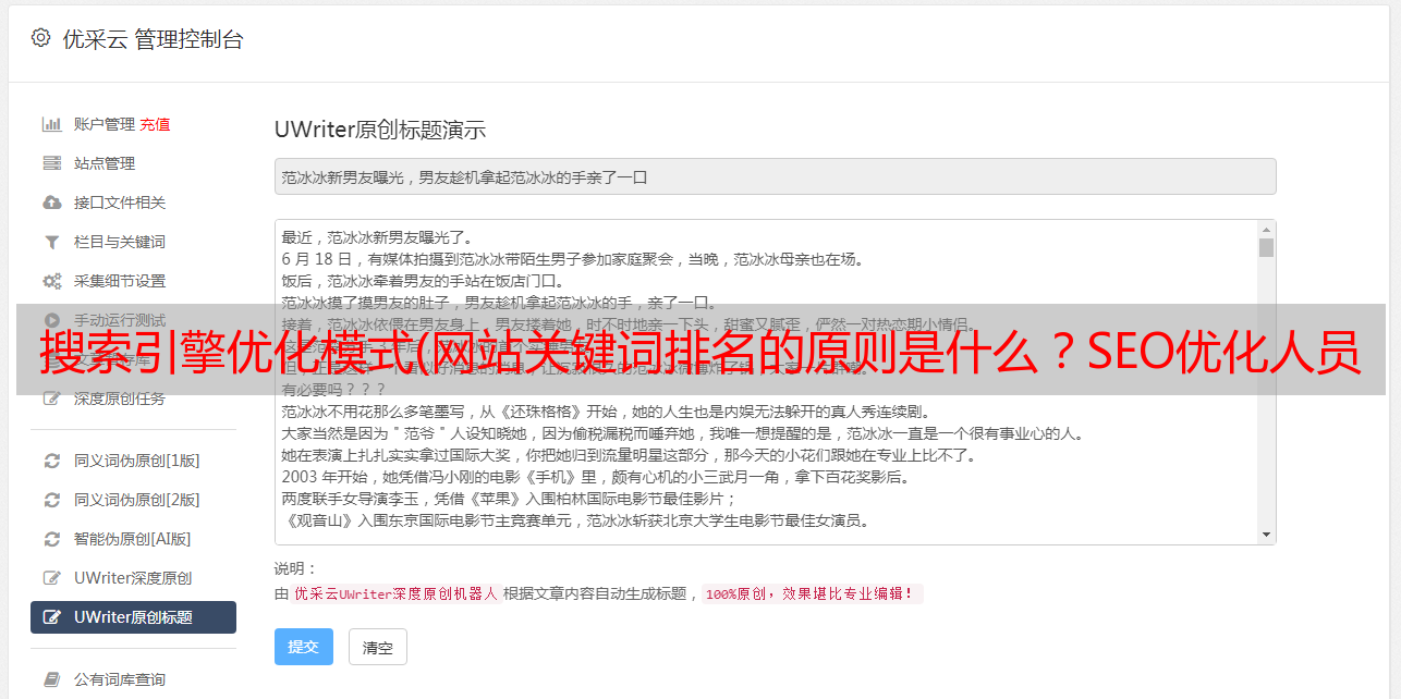 优采云 发布时间: 2021-09-01 08:25搜索引擎优化模式(网站关键词排名的原则是什么?SEO优化人员不知道)