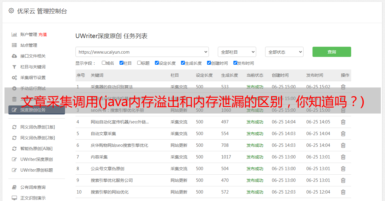 优采云 发布时间: 2021-09-01 14:10文章采集调用(java内存溢出和内存泄漏的区别,你知道吗?)