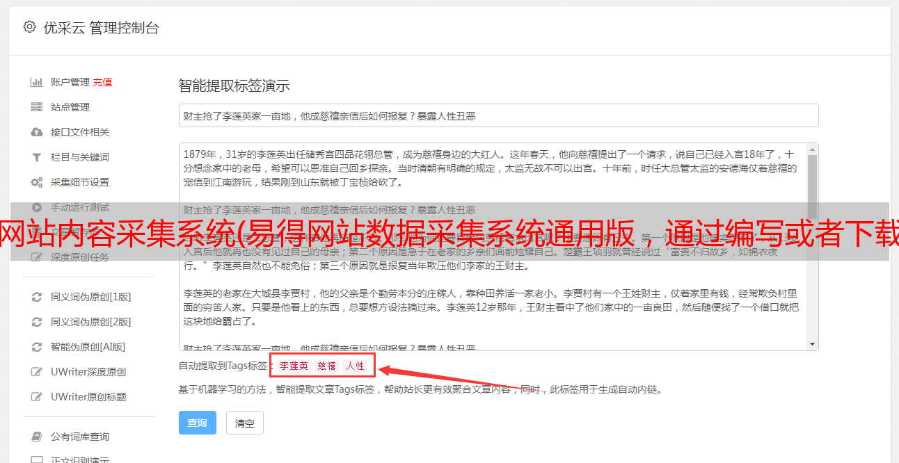 优采云 发布时间: 2021-09-01 15:11网站内容采集系统(易得网站数据采集系统通用版,通过编写或者下载规则