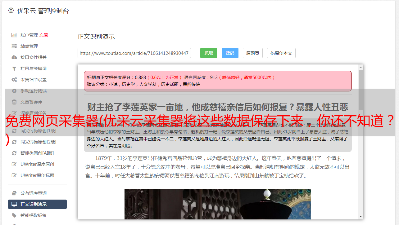 免费网页采集器(优采云采集器将这些数据保存下来,你还不知道? )