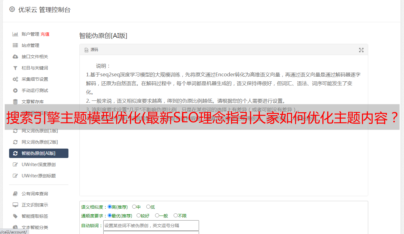 优采云 发布时间: 2021-09-02 15:01搜索引擎主题模型优化(最新SEO理念指引大家如何优化主题内容?(一))