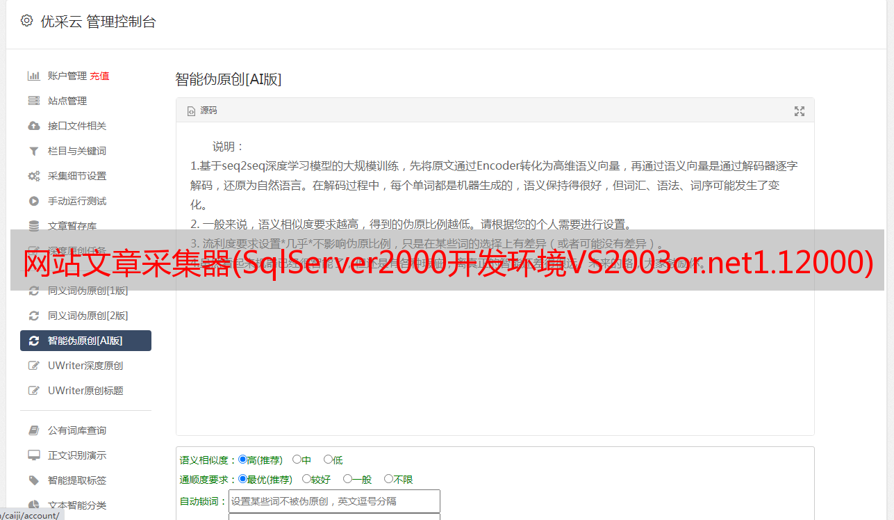 优采云 发布时间: 2021-09-03 12:06网站文章采集器(SqlServer2000开发环境VS2003or.net1.12000)
