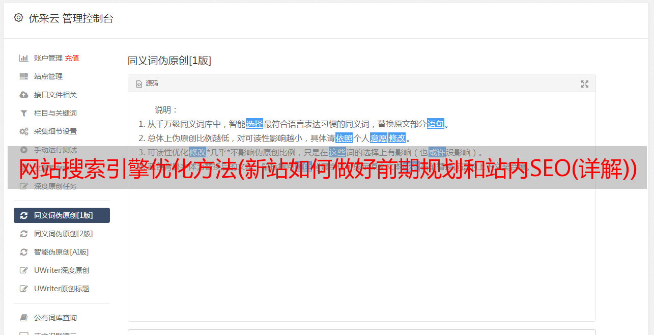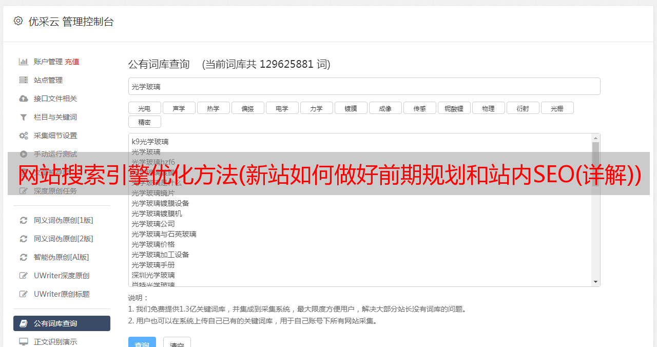优采云 发布时间: 2021-09-03 19:10网站搜索引擎优化方法(新站如何做好前期规划和站内SEO(详解))