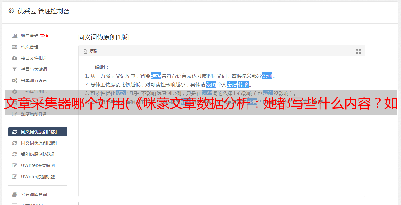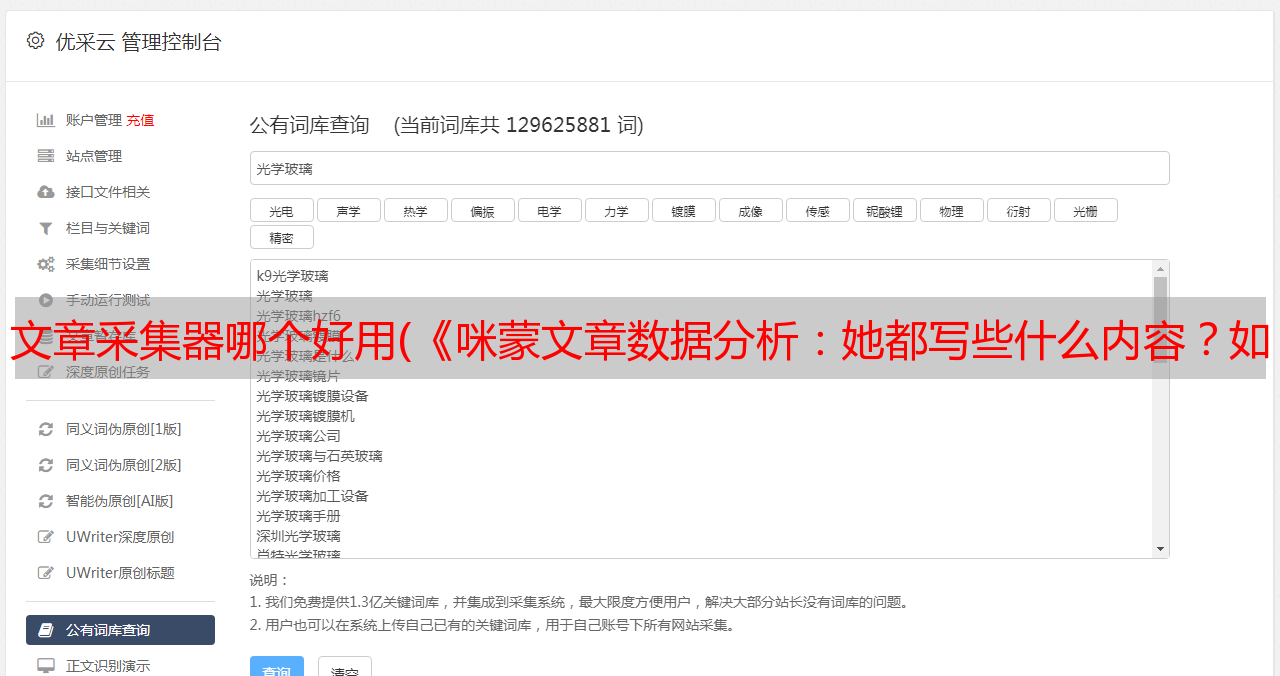 优采云 发布时间: 2021-09-03 22:25文章采集器哪个好用(《咪蒙文章数据分析:她都写些什么内容?如何刺激转发痛点?》
