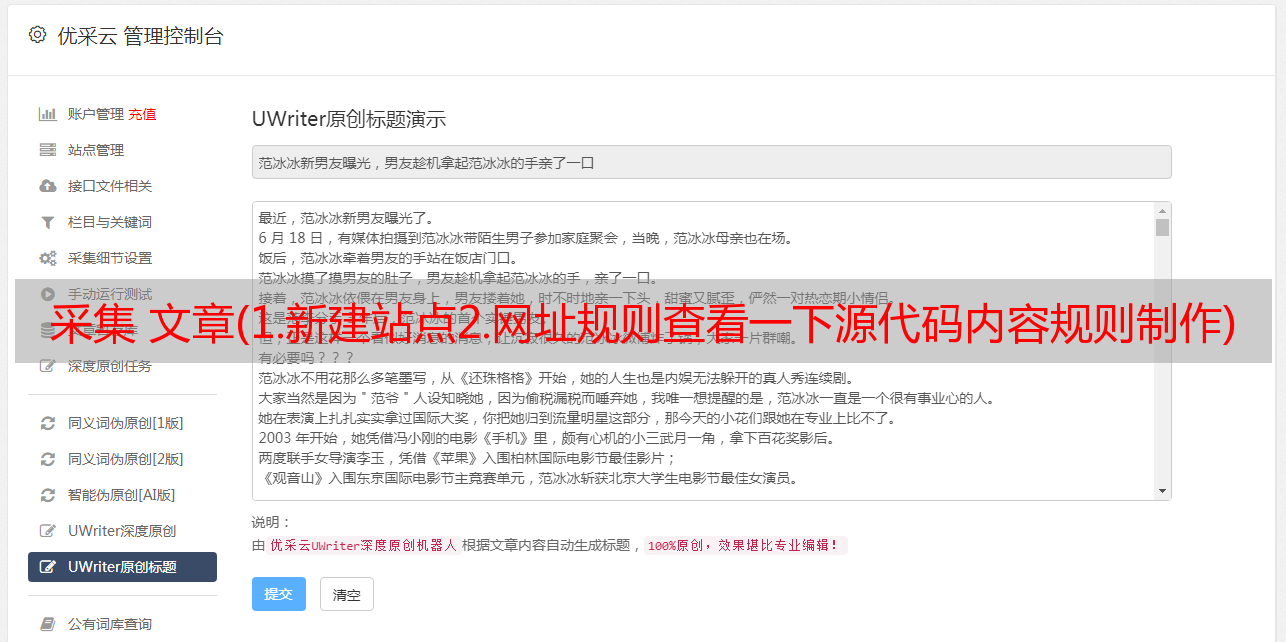采集 文章(1.新建站点2.网址规则查看一下源代码内容规则制作)