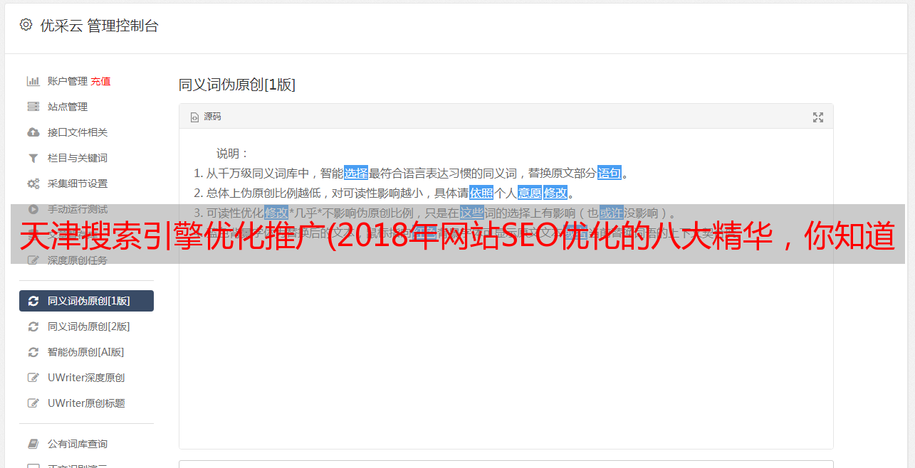 优采云 发布时间: 2021-09-04 09:17天津搜索引擎优化推广(2018年网站SEO优化的八大精华,你知道吗?)