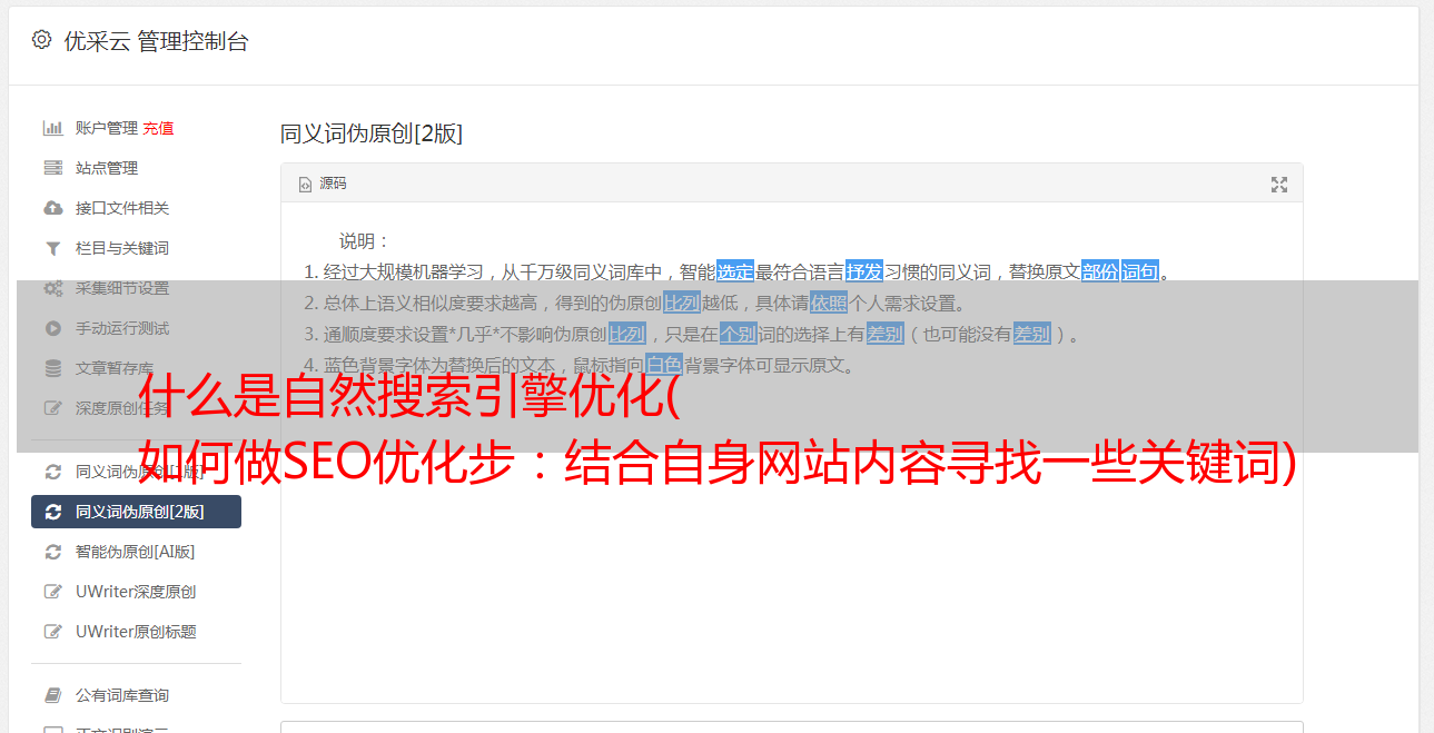 优采云 发布时间: 2021-09-04 11:23什么是自然搜索引擎优化(