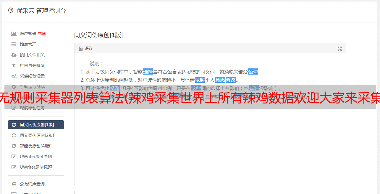 这个采集器暂时不支持伪原创功能,后续会添加合适的伪原创选项。