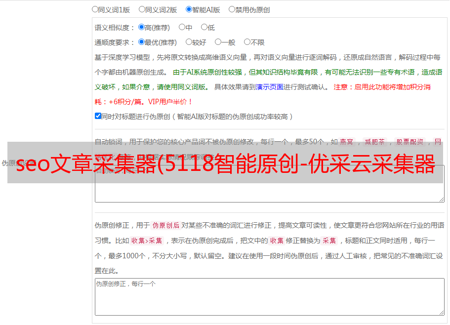 在优采云采集器中,使用5118智能原创插件,不再需要人工处理,可以批量生产内容指纹完全不同的文章,大大提高了效率内容SEO编辑,让文章更容易成为收录。