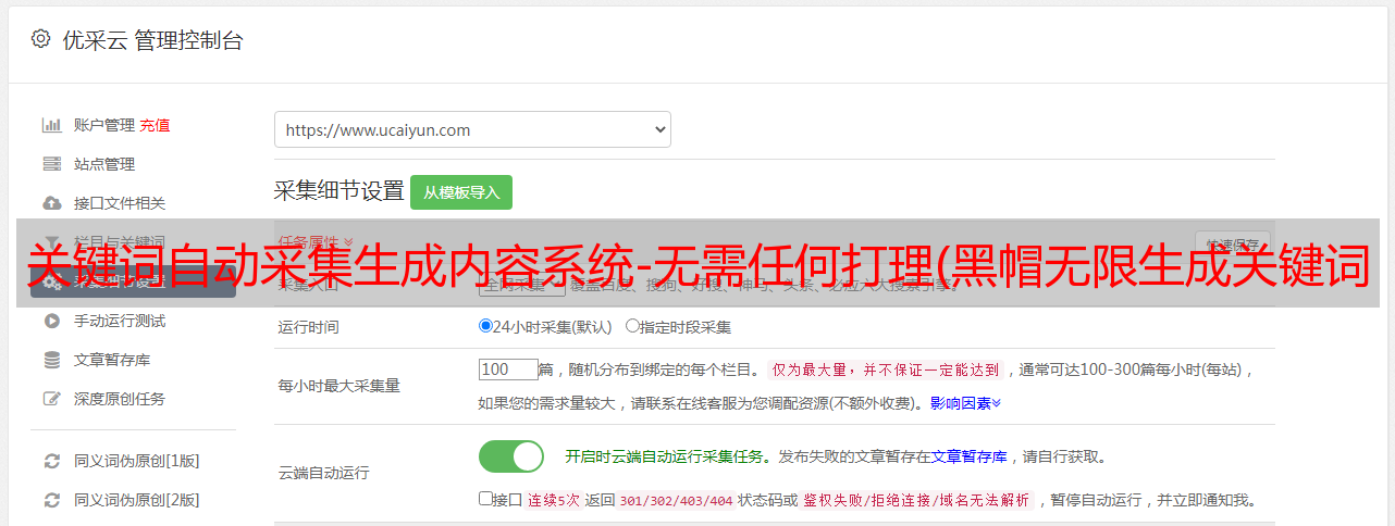 关键词自动采集生成内容系统-无需任何打理(黑帽无限生成关键词页面用内容页来做黑帽SEO优化)