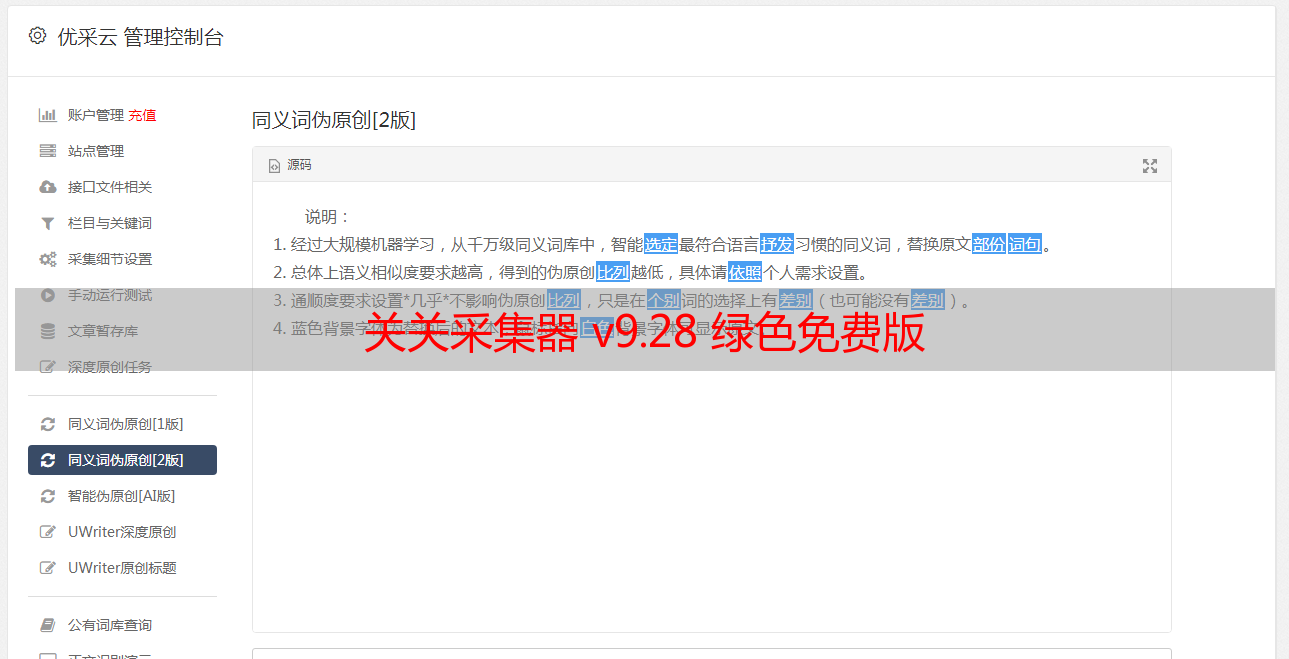 优采云 发布时间: 2020-08-19 05:55关关采集器 v9.28 绿色免费版