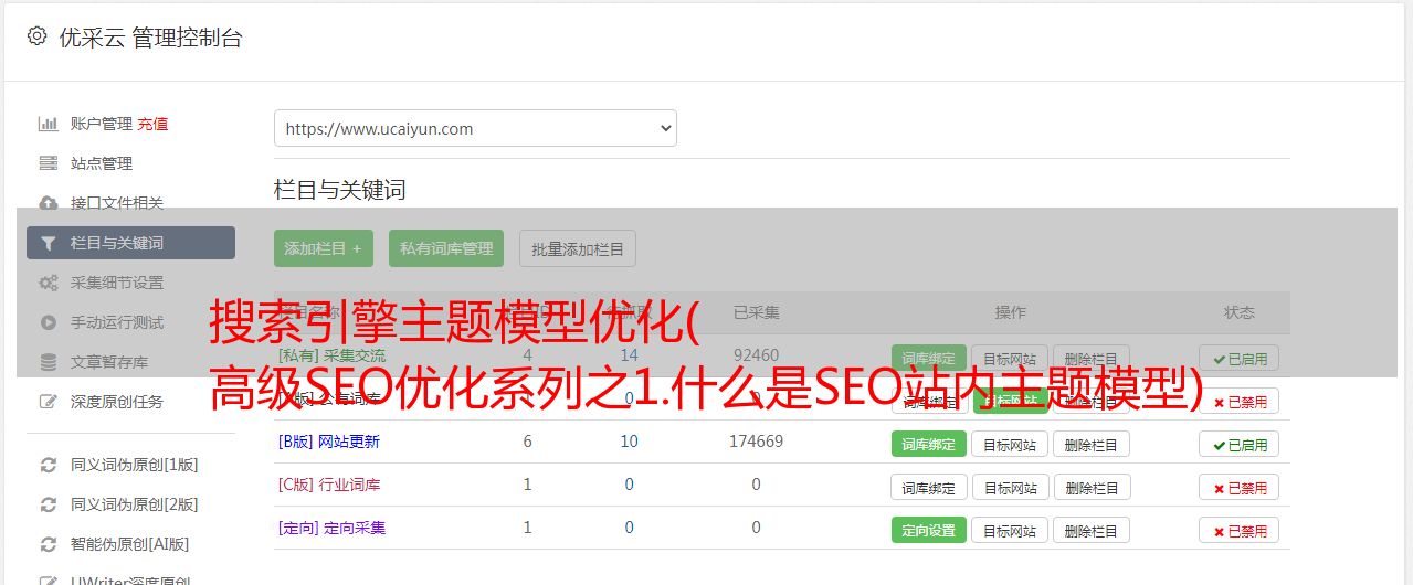 优采云 发布时间: 2021-09-05 23:24搜索引擎主题模型优化(