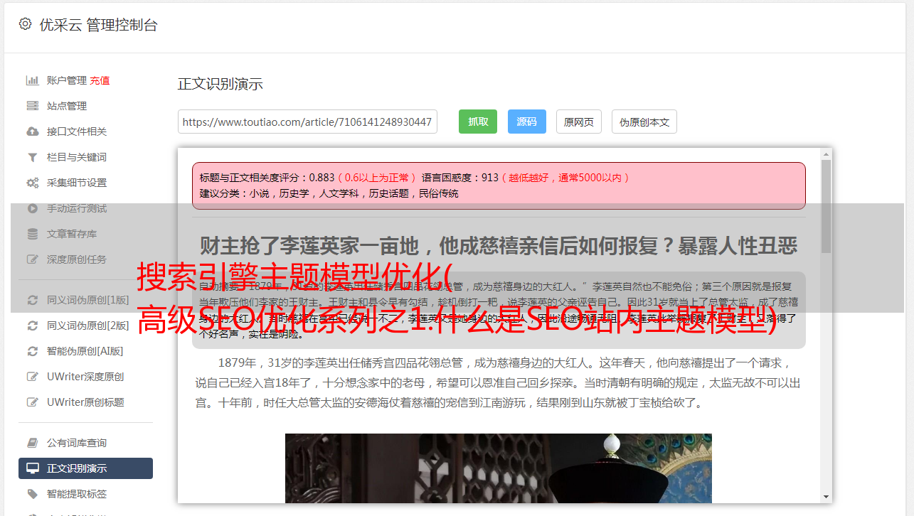主题模型是一种页面内容布局的模型,目的是让搜索引擎正确理解整个页面的核心主题是什么,而不是传达关键词多。因为一个页面可以收录很多信息,有的有用,有的被占用,只有将真实的核心信息传递给搜索引擎才能获得相应的排名。因此,在主题模型中,我们需要实现全新的4步优化方法: