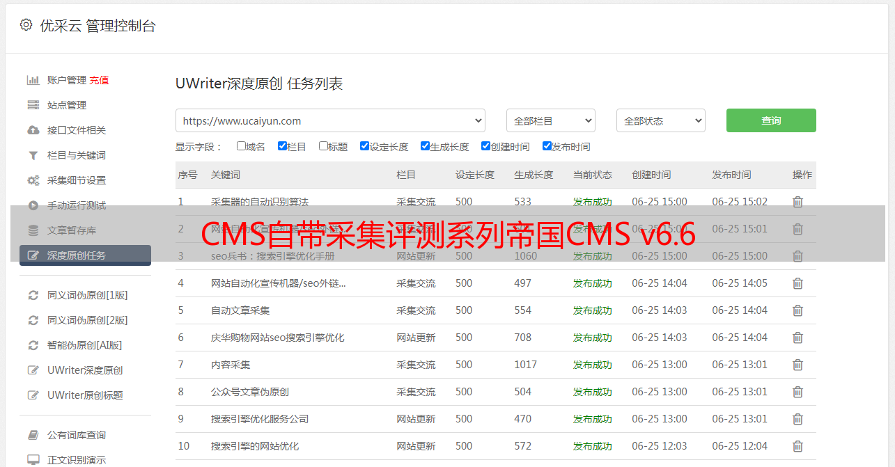 优采云 发布时间: 2020-08-19 11:01CMS自带采集评测系列帝国CMS v6.6