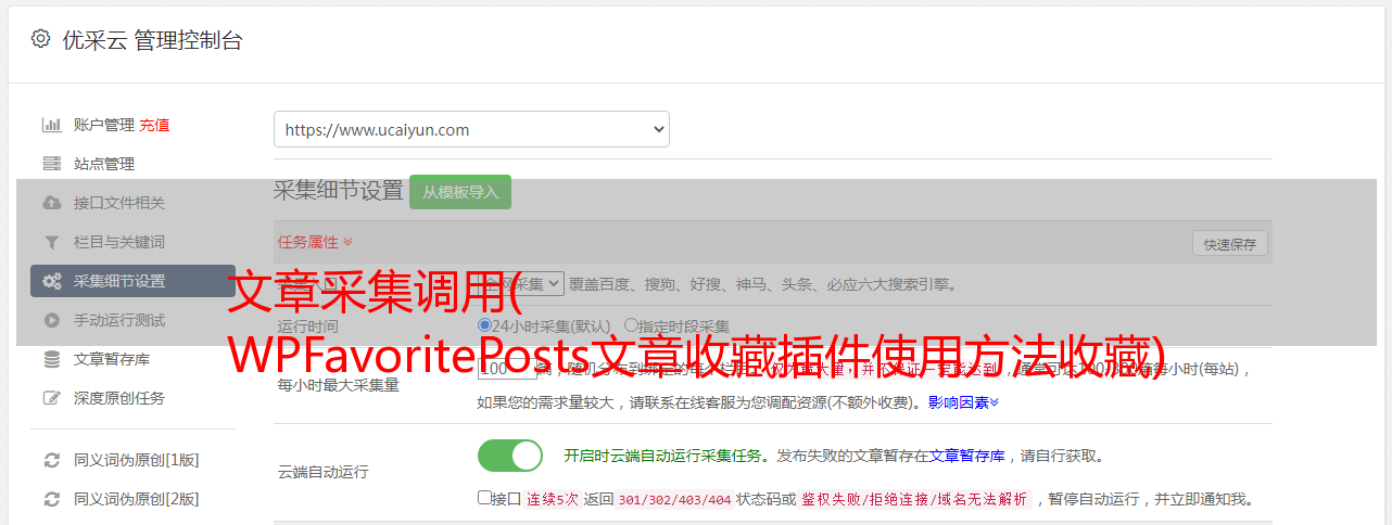 启用2.后,在设置-采集的帖子中,可以进行相关设置(如果不懂英文,请使用翻译工具进行翻译)