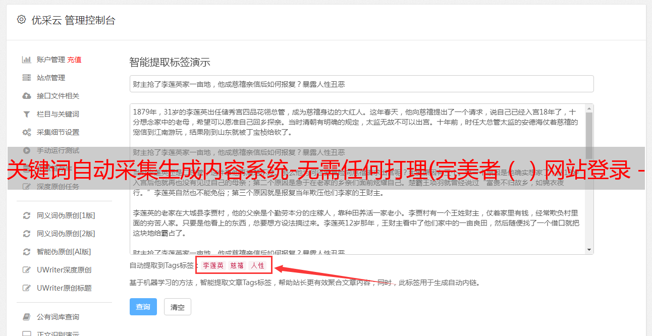 关键词自动采集生成内容系统-无需任何打理(完美者()网站登录-支持网站Cookie板块的扩充)