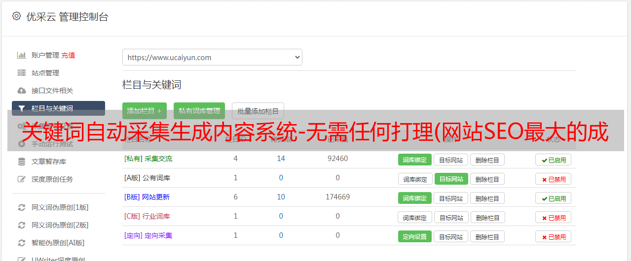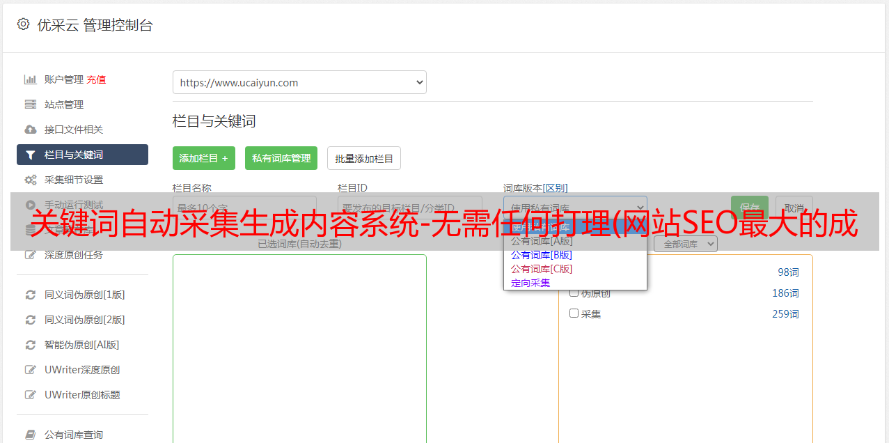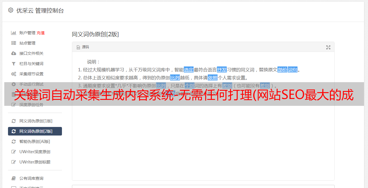 优采云 发布时间: 2021-09-06 14:21关键词自动采集生成内容系统-无需任何打理(网站SEO最大的成本是什么?建站、外链、快排?)
