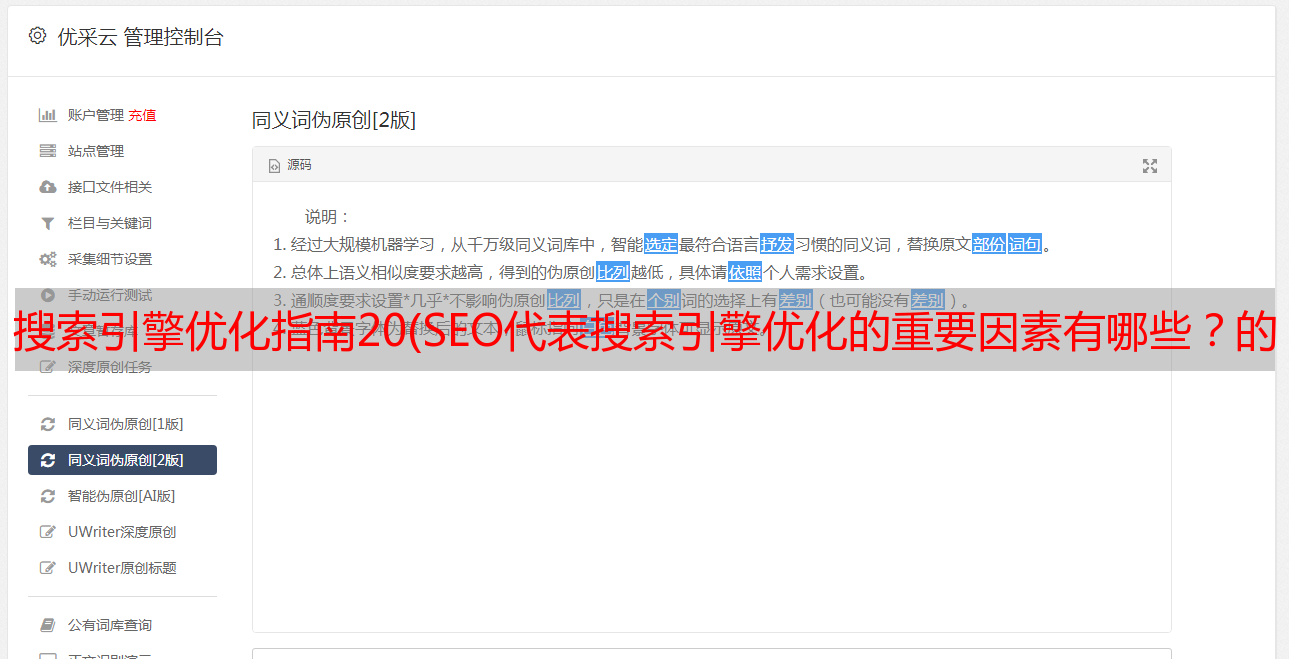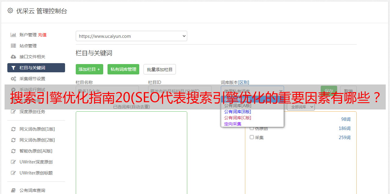 优采云 发布时间: 2021-09-07 09:27搜索引擎优化指南20(SEO代表搜索引擎优化的重要因素有哪些?的CMS)