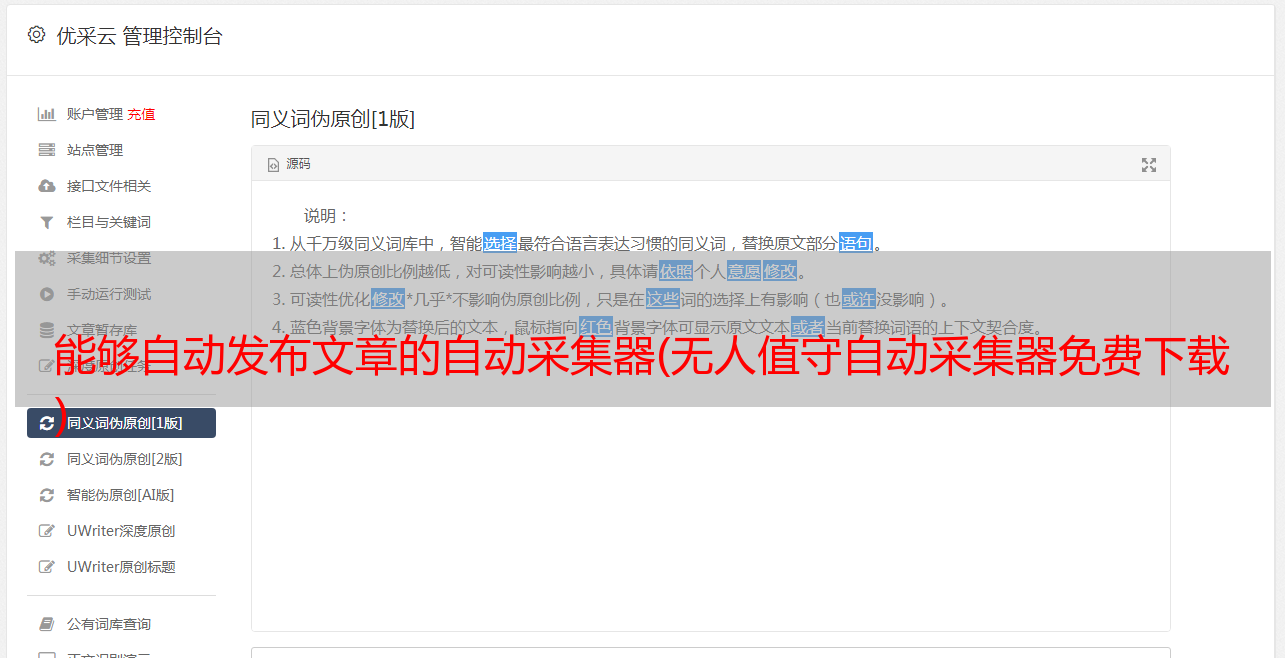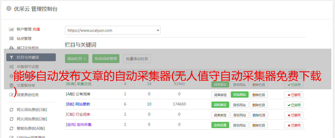 信息反馈可以让您快速了解工作状态。无人值守免费全自动采集器功能介绍下载链接httpwwwzzcitynetproductproductaspshare28466特点1设置计划24小时自动工作,无需人工干预2通过独立生产与网站分离接口可以支持任何网站或数据库3灵活并且强大的采集规则不仅可以采集文章可采集任何类型的信息 4 体积小,消耗低,稳定性好,非常适合在服务器上运行 5 所有规则都可以导入导出 灵活的资源重用 6 使用FTP 上传文件,稳定安全 7 下载上传支持断点续传 8 高速伪原创采集1 可以选择倒序随机采集文章2 支持自动列表URL 3 支持网站其中数据分布在多个页面采集4 自由设置采集数据项,可以单独过滤和组织每个数据项 5 支持分页内容采集6 支持包括图片在内的任何格式和类型的文件 视频下载oad 7 可突破防盗文件 8 支持动态文件 URL 解析 9 支持采集10 需要登录才能访问的网页关键词采集11 可设置防止采集敏感词 12 可以设置图片水印发布1 支持文章带回复发布,可广泛应用于论坛、博客等项目。 2 与采集data 分离的发布参数项可以自由对应采集数据或预设值,大大增强了发布规则的复用性 3 支持发布账号的随机选择 4 支持任意发布项目的语言翻译 5 支持编码转换支持UBB代码 6 可选择文件上传并自动创建年月日目录 7 模拟发布支持无法安装的网站发布操作 8 解决方案 定时工作 9 防止网络运营商劫持HTTP功能 10 可手动执行单项采集发布 11 详细的工作流监控信息反馈,让您快速了解工作状态 v2510 绿色版更新列表 1 新增支持随机插入字符串,见数据排序随机定位标记 2 添加数据排序和参数值现在可以使用时间标记来获取当前时间 3 新数据排序添加不等式标记 4 添加ed list 分析获取附加信息现在可以在数据排序中引用 5 新增功能 自动删除从文章下载失败的图片代码 6 更准确地优化动态 URL 的文件扩展名识别 7 优化开始工作时自动,可以先处理计划的现有目录 8 优化数据分页现在有2000页的上限 9 修复了匹配多个内容时选择数据项时出现乱码的问题。 10修复了自动列表和逻辑分页的数量现在支持更长的数字。下载地址 httpwwwzzcitynetproductproductaspshare28466httpwwwzzcitynetproductproductaspshare 28466