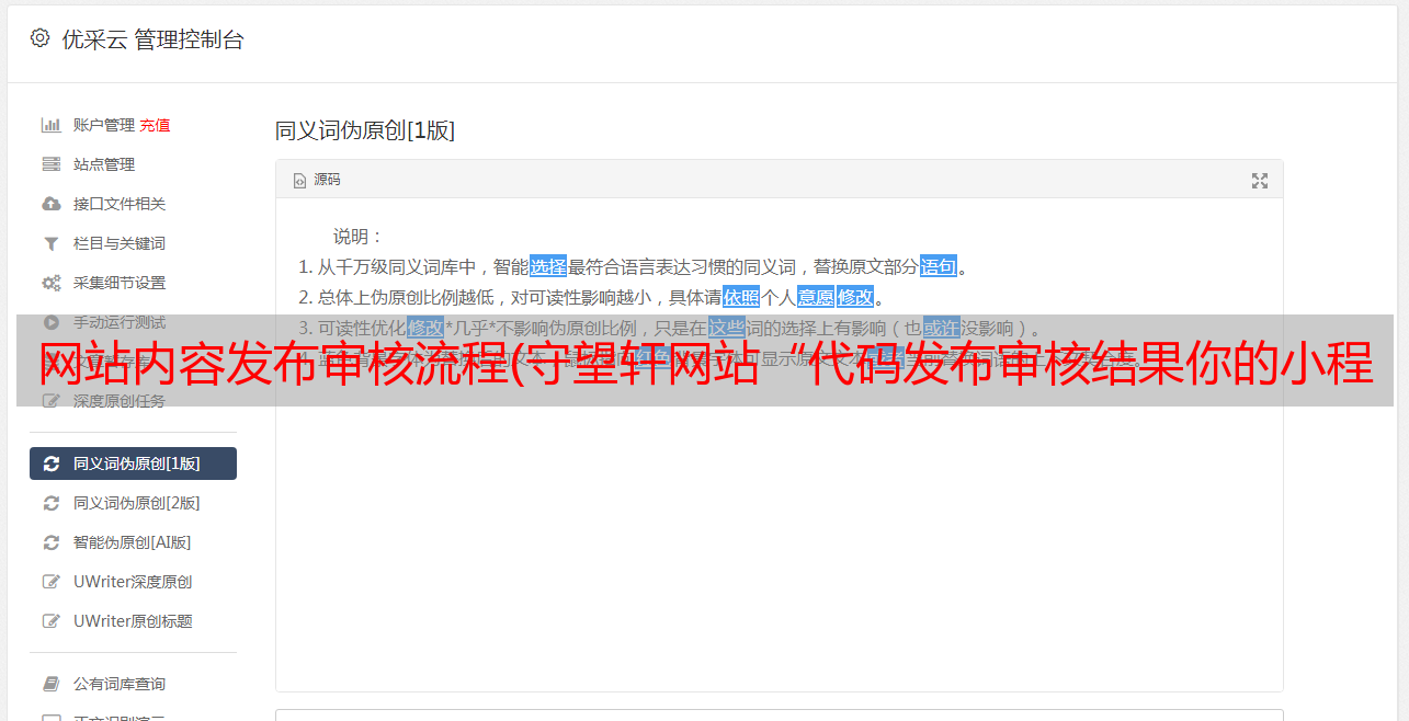 优采云 发布时间: 2021-09-07 22:26网站内容发布审核流程(守望轩网站“代码发布审核结果你的小程序”)