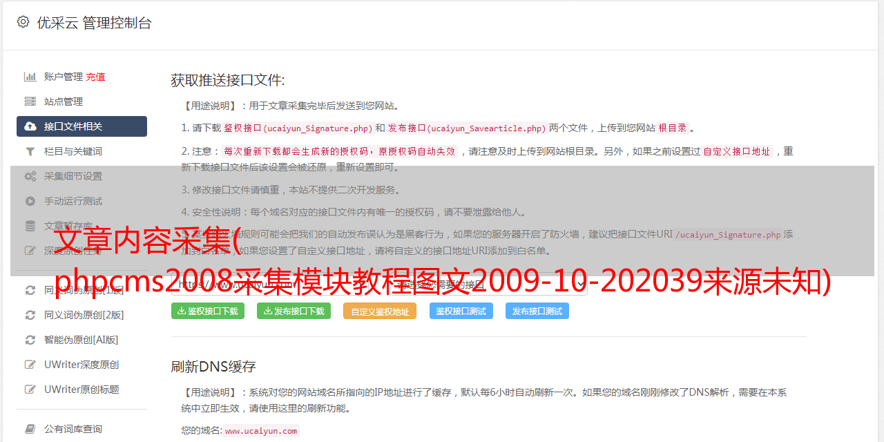 他的评论和链接被信息替换--google_ad_section_start--多次替换被Html隔开自动清除就是清除采集内容中的一些html标签。根据实际情况选择。可以设置文章分页采集,合并分页码的边界是指分页码列表的上下边界。 C 高级设置列表页编码 设置列表页的编码为GBK 或UTF-8。查看方法 打开列表页面,在页面空白处右击——查看源文件并搜索charset等号,然后设置页面编码内容页面编码。这就是文章内容页编码查看方式,和下载图片、下载flash、下载文件等一样,这些都是简单易懂的说明。数字设置为5,采集值越大,速度越快,占用系统资源越大。超时时间为采集内容链接无响应时间。您无需更改它,一切就绪。这时候只要点击保持设置即可。第三步启动采集URL操作模块管理-》采集管理-》采集Taskmanagement-》采集URL在管理操作,第四步启动采集content操作采集URL完成后,在管理操作中点击采集content或模块管理-》采集管理-》采集Taskmanagement-》采集Content 点击采集content后,会自动显示采集进度条采集进度条第五步发布内容操作采集内容完成点击发布内容。这里需要注意的一点是,生成html的速度很慢。如果您发布的内容较少,则可以选择此选项。如果你发布文章一百多篇文章,建议不要选择这个文件,因为phpcms默认每次发布文章都会更新网站home列表页面栏目内容页面html批量发布会导致频繁更新这些页面严重降低了发布效率。发布文章时取消这个选项只将文章添加到数据库中非常高效 高发布完成后,可以使用phpcms内置的HTML生成功能,只更新特定下的内容页面列和列。生成HTML操作位于内容管理-》生成HTML,更新栏目页面,根据需要更新内容页面