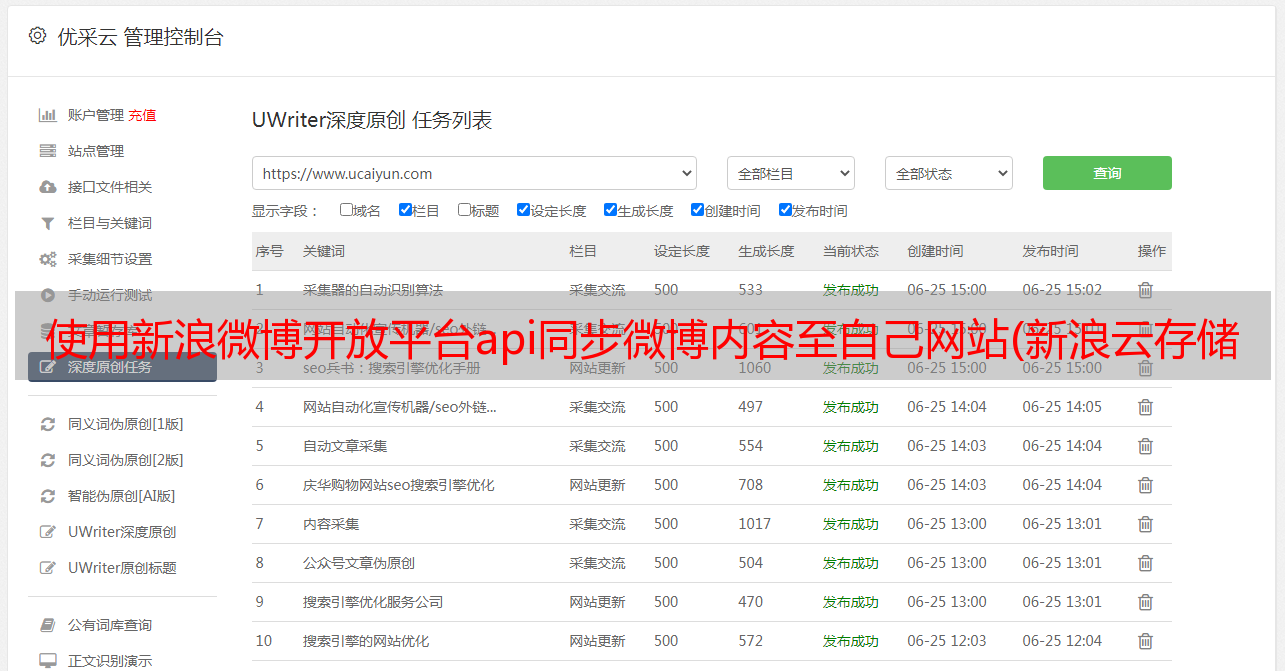 优采云 发布时间: 2021-09-08 02:01使用新浪微博开放平台api同步微博内容至自己网站(新浪云存储SCS插件和新浪微博同步插件维护行动)