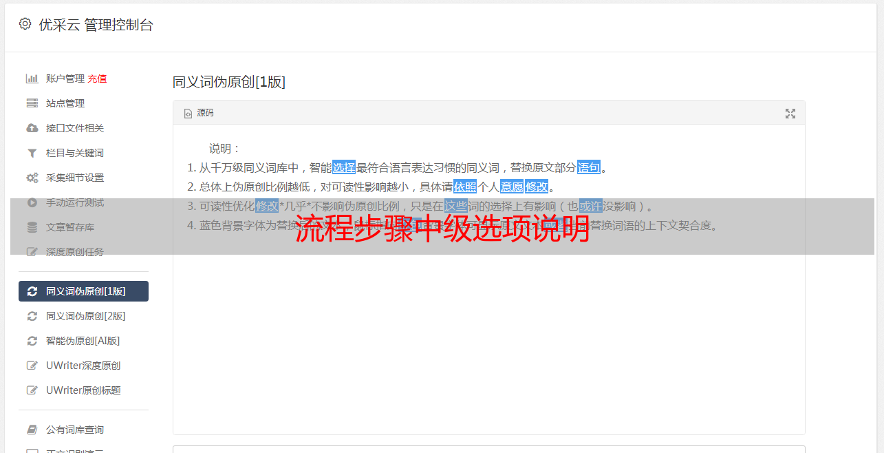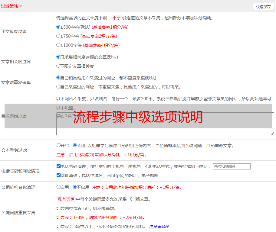优采云 发布时间: 2020-08-20 11:37流程步骤中级选项说明