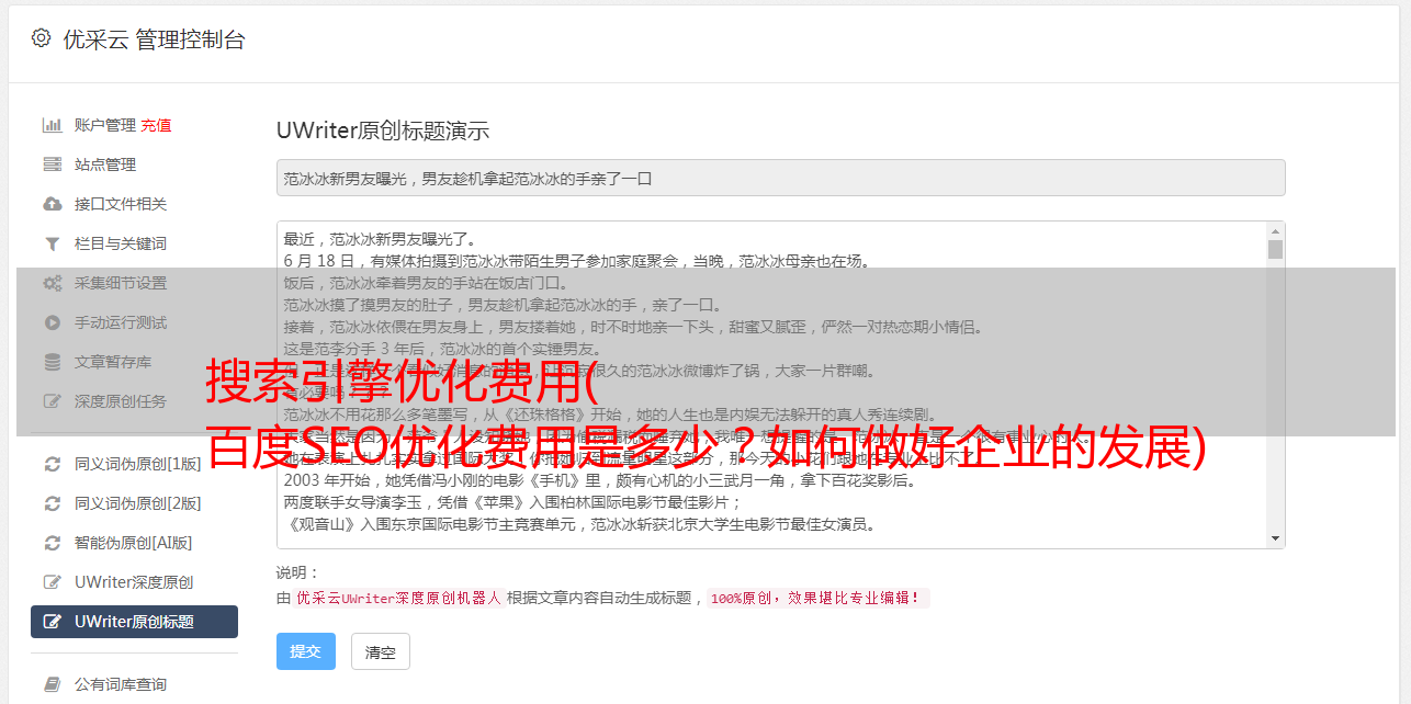 优采云 发布时间: 2021-09-08 17:07搜索引擎优化费用(