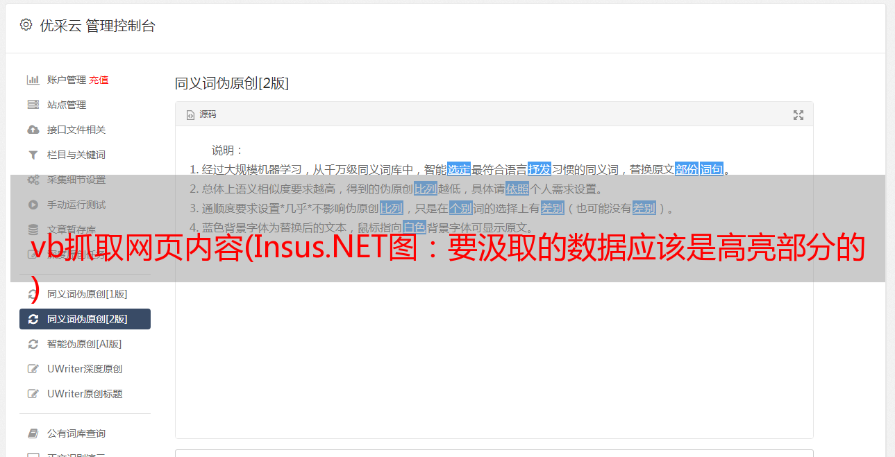 优采云 发布时间: 2021-09-09 07:03vb抓取网页内容(Insus.NET图:要汲取的数据应该是高亮部分的