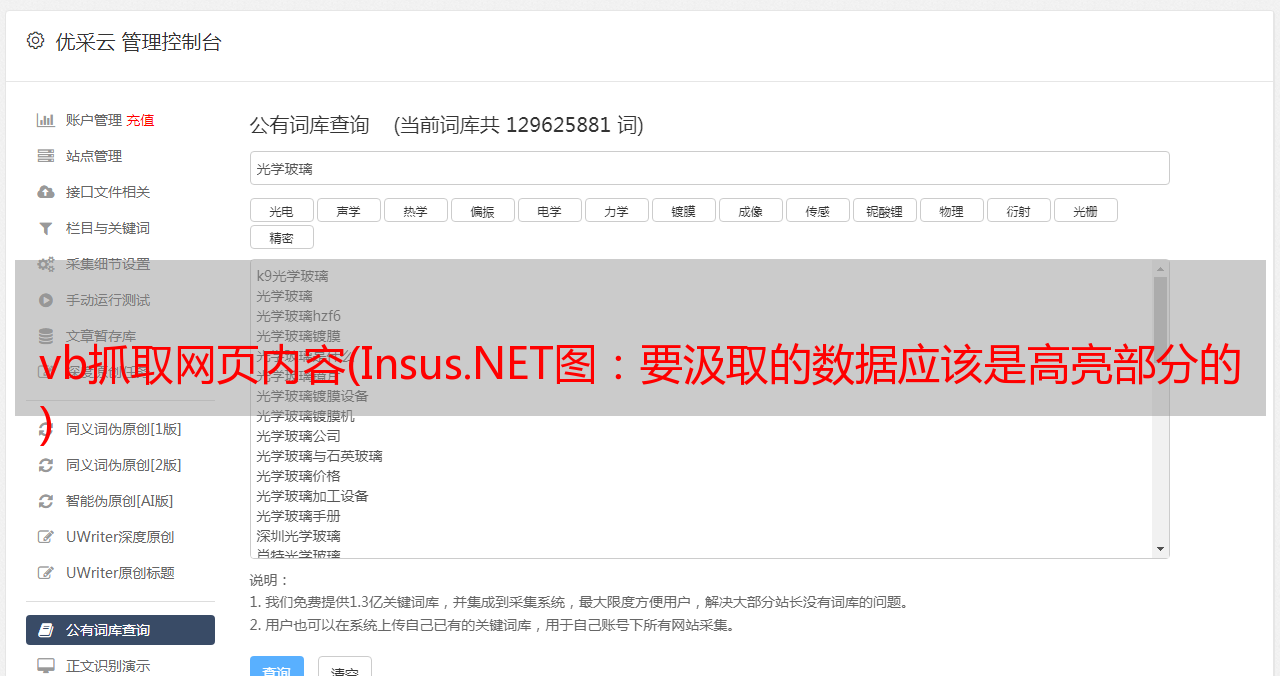 vb抓取网页内容(Insus.NET图:要汲取的数据应该是高亮部分的 )