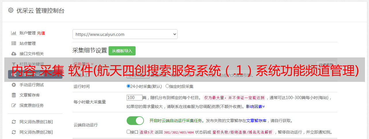 内容 采集 软件(航天四创搜索服务系统(.1)系统功能频道管理)
