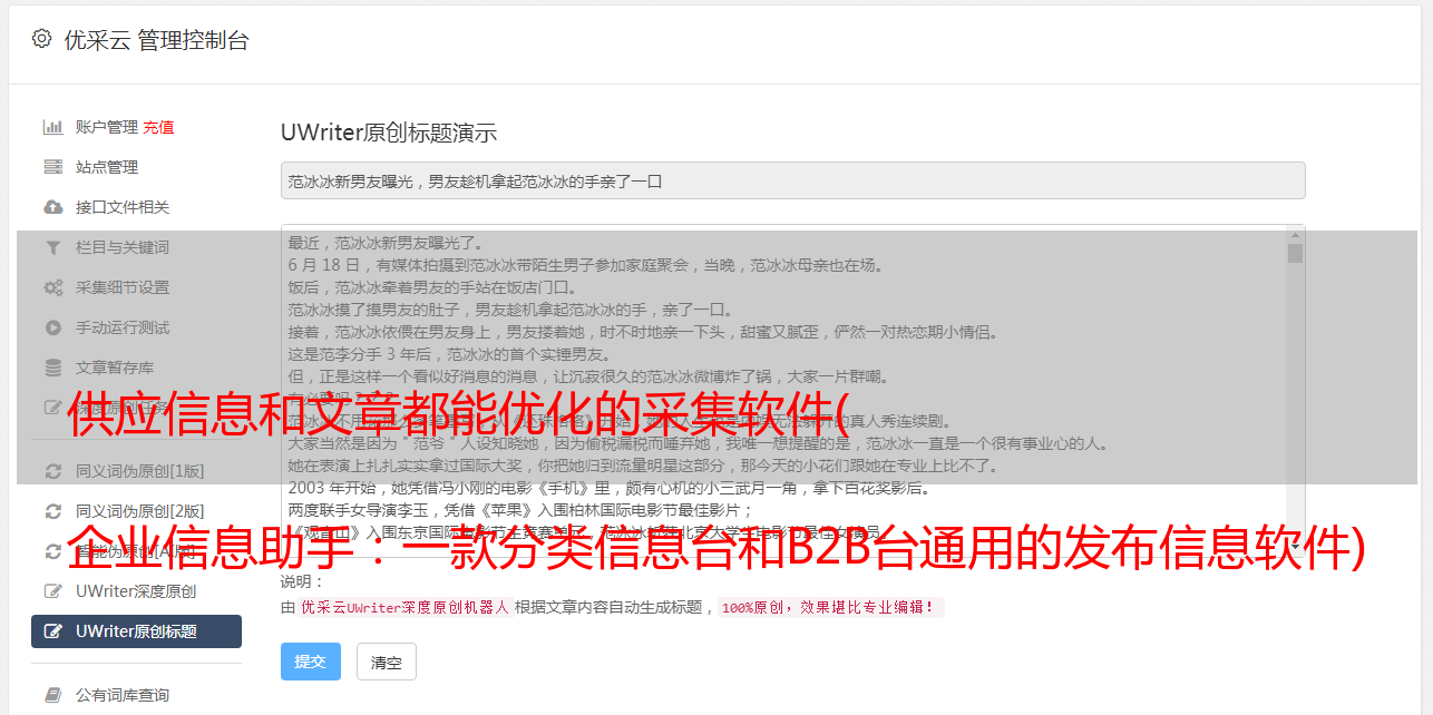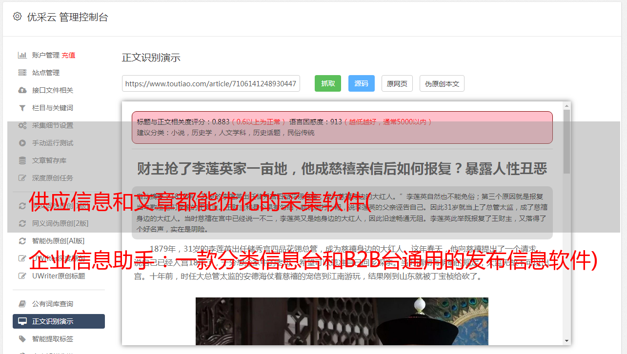 供应信息和文章都能优化的采集软件( 企业信息助手:一款分类信息台和B2B台通用的发布信息软件)
