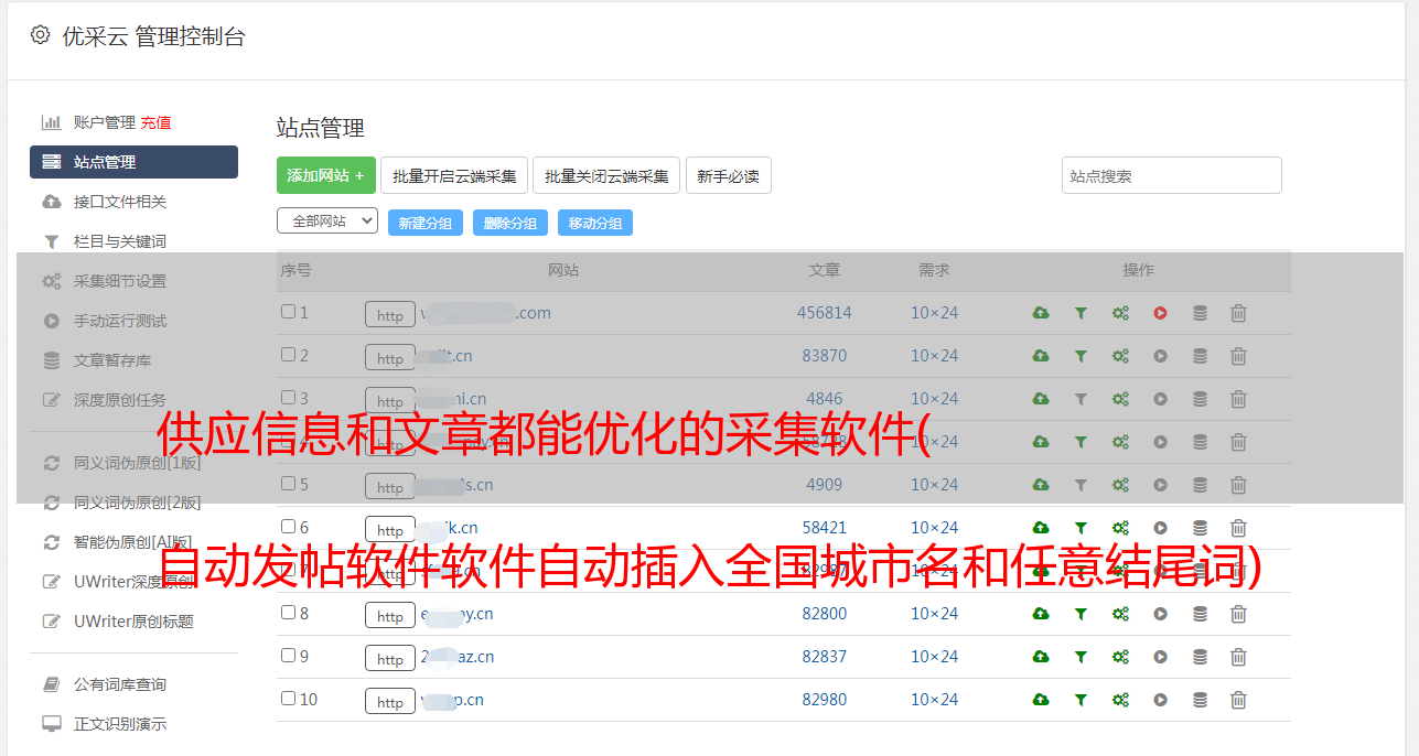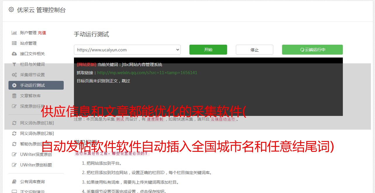 供应信息和文章都能优化的采集软件( 自动发帖软件软件自动插入全国城市名和任意结尾词)