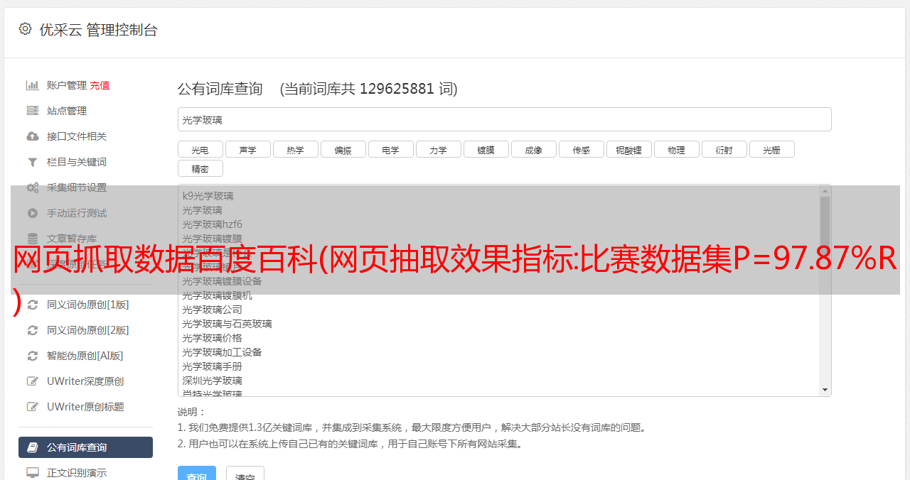 优采云 发布时间: 2021-09-11 02:12网页抓取数据百度百科(网页抽取效果指标:比赛数据集P=97.87%R